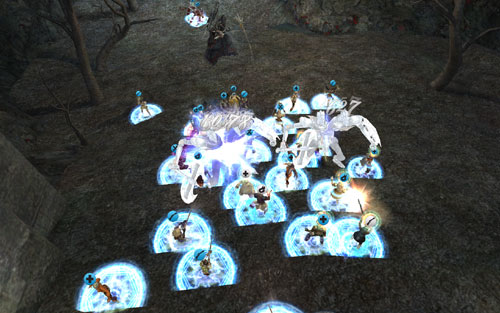 固める方法だと、スタンが切れる前にHPを削りとらなくてはならないため、少人数だときついです。グルグルまわす方法なら、ファイがしっかりしてさえいれば、多少時間かかっても、確実にHPを削り続けることができます。装備さえそろえば、5人でもできる方法なんです・・・
